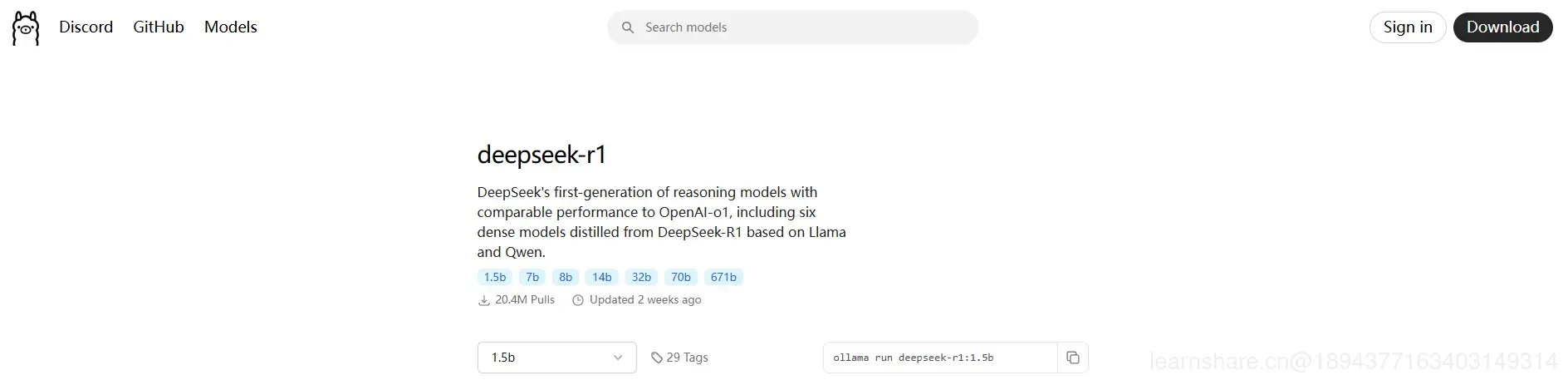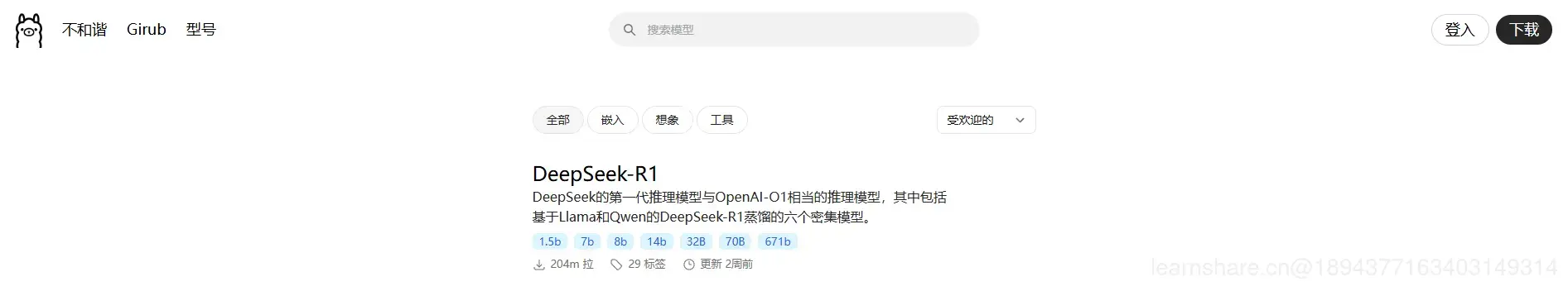 里面有好多模型,我们选择第一个 DeepSeek-R1