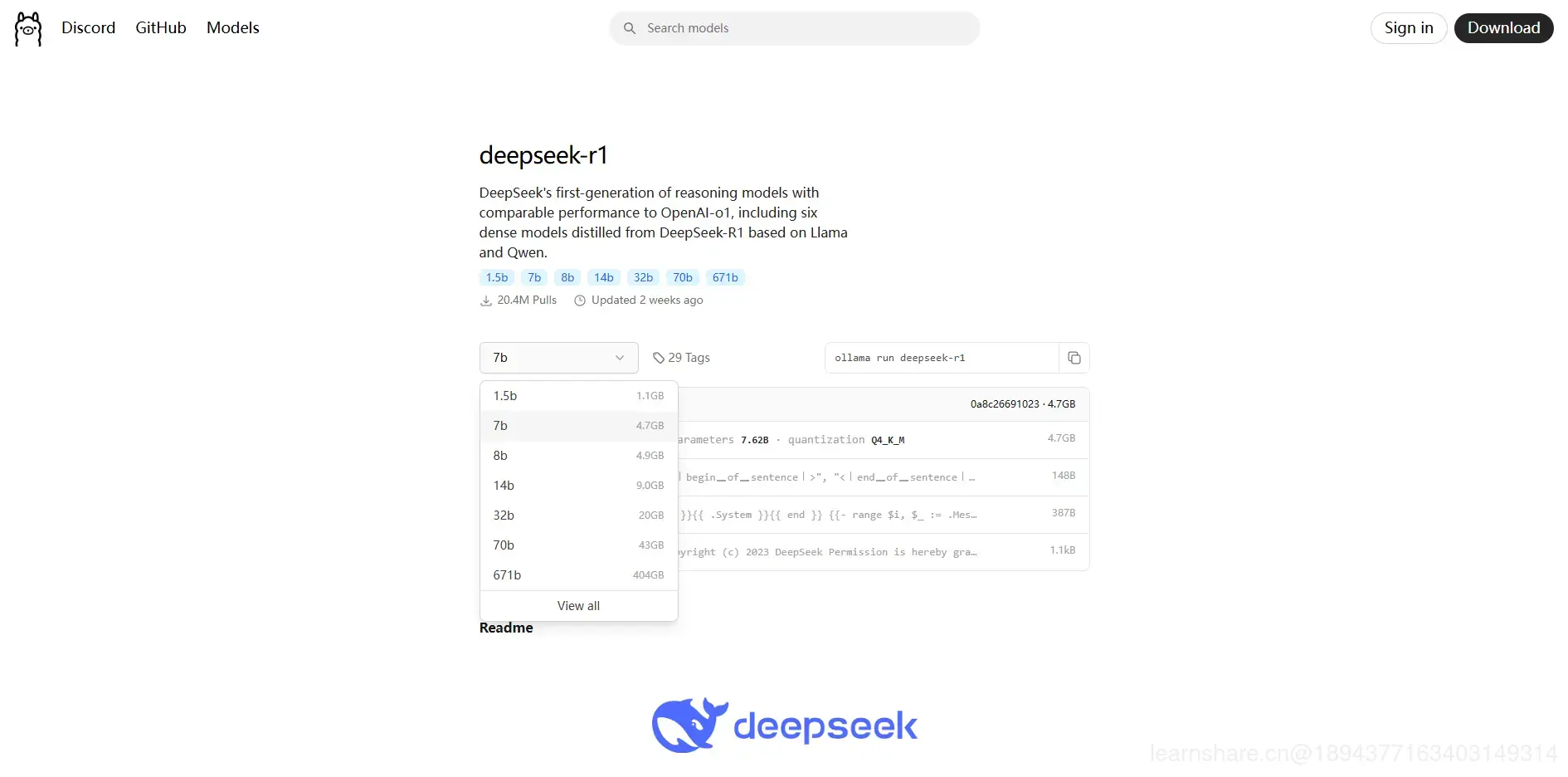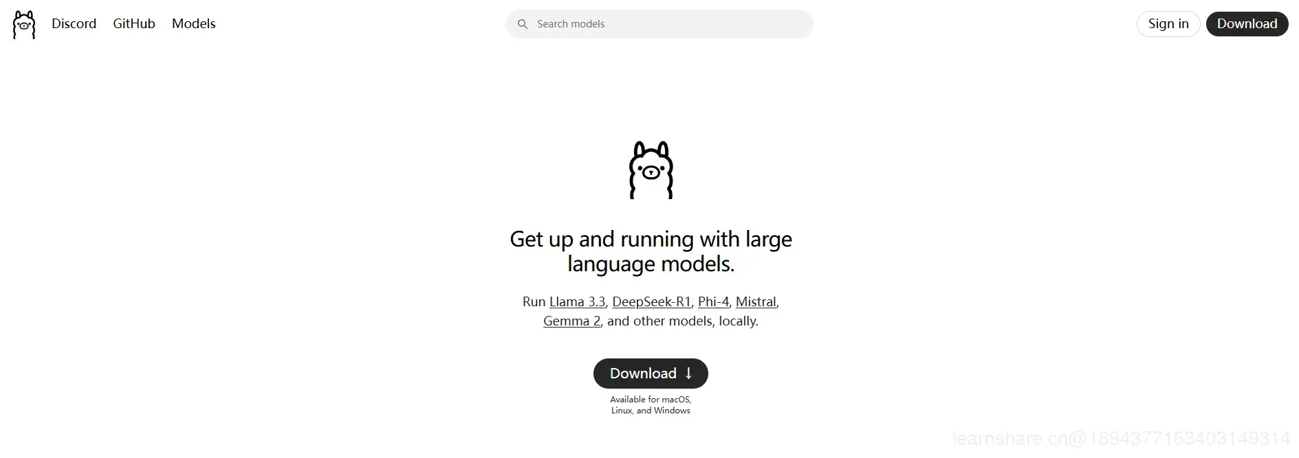 使用 Ollama 下载 deepseek 模型。访问 Ollama 官网,按照指引下载并安装 Ollama。